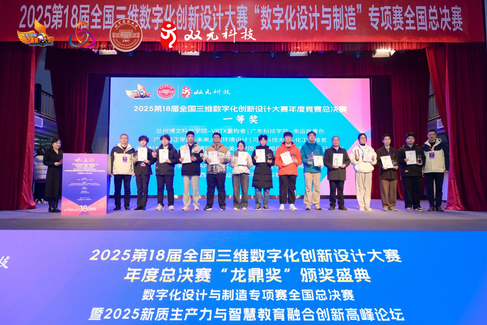 12月21日,第18届全国三维数字化创新设计大赛年度总决赛“龙鼎奖”颁奖盛典在北京建筑大学落下帷幕。我院学生李立圣、张志远、张旺洋等组成的“天鲸”、“通达天地”两支参赛团队的创新作品《天鲸—多功能水空两用无人船》和《巡天电羽—轻量化火箭开创者》荣获全国一等奖,实现了学校在该国家级赛事领域又一重大突破。