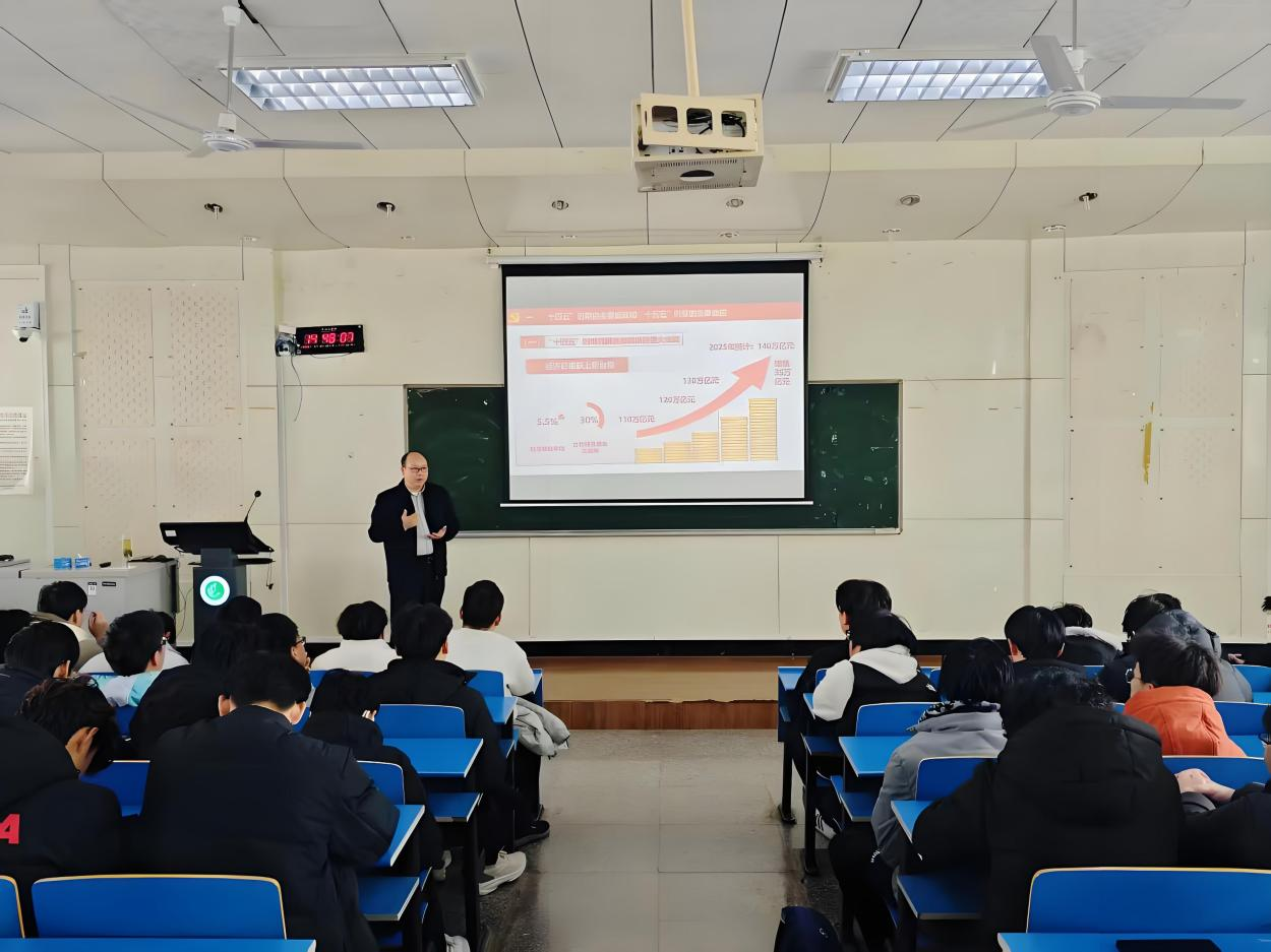 代克杰以“学习贯彻党的二十届四中全会精神,奋力开创‘十五五’发展新局面”为题,围绕党的二十届四中全会精神这一核心,深入阐述了二十届四中全会的重要意义、核心要义和实践要求。代克杰指出,“十五五”时期是我国迈向基本实现社会主义现代化的关键五年,也是跨越中等收入陷阱、进入高收入国家行列的重要时期,专业能力是青年服务社会、贡献国家的重要基石。针对电气工程及其自动化专业学生,他强调“双碳”目标下,新能源技术、智能电网等领域的专业人才将是推动绿色转型的核心力量,鼓励同学们应深入理解专业内涵与发展前景,将专业学习、职业规划与国家战略需求紧密结合,摒弃盲目跟风心态,真正做到“个人理想融入国家发展,用专业能力铸就强国之基”。