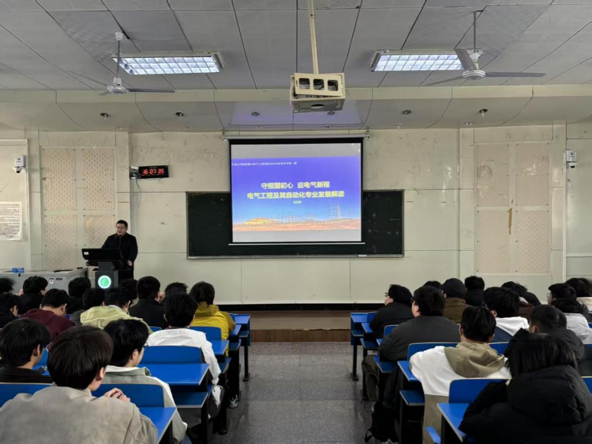3月11日下午,赵志敏以“守报国初心,启电气新程”为主题,为2025级学生做“开学第一课”。他围绕学生专业核心发展问题展开专题讲解,全面介绍了能源与电气类相关专业的发展前景,以详实数据直观呈现专业就业全景,并重点解读了学院近年来考研率及升学院校分布等信息,帮助学生精准分析专业竞争优势,进一步筑牢专业认知、增强学习动力及专业自信。