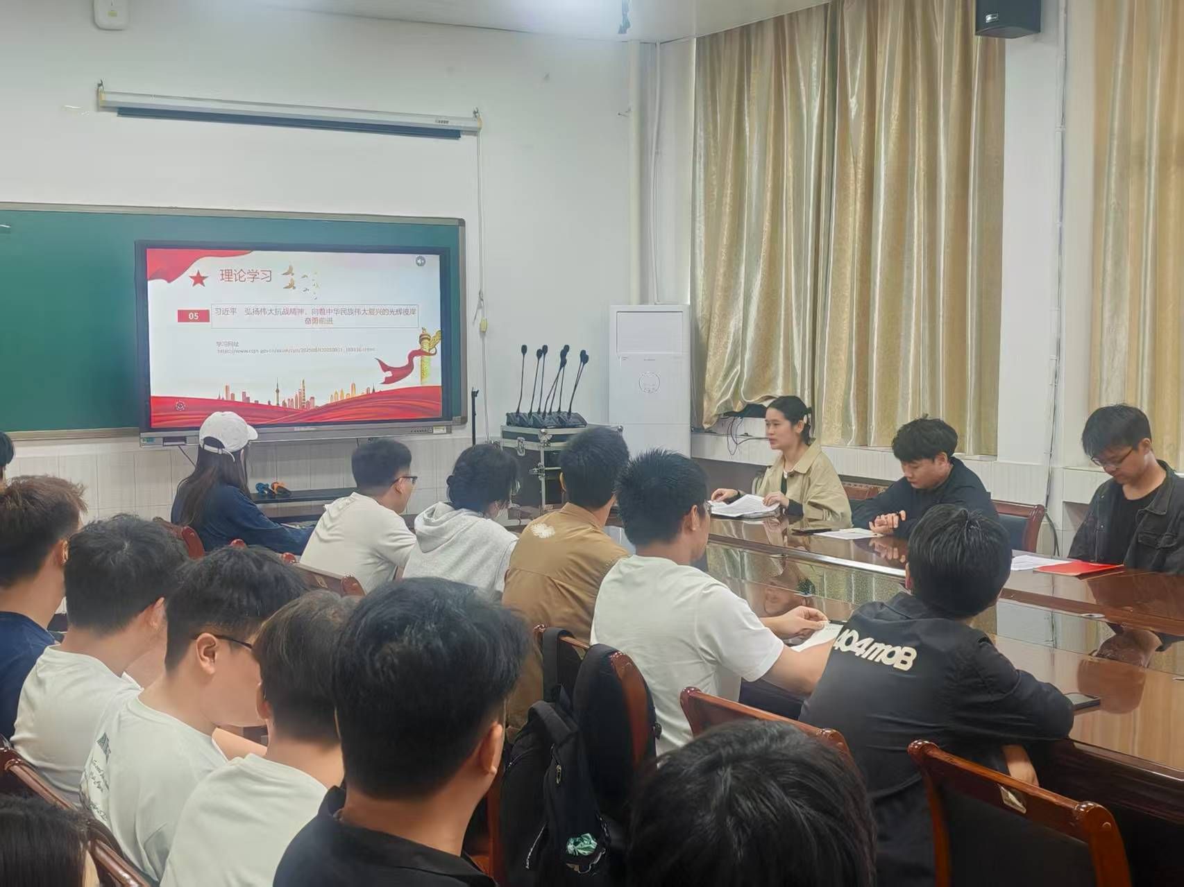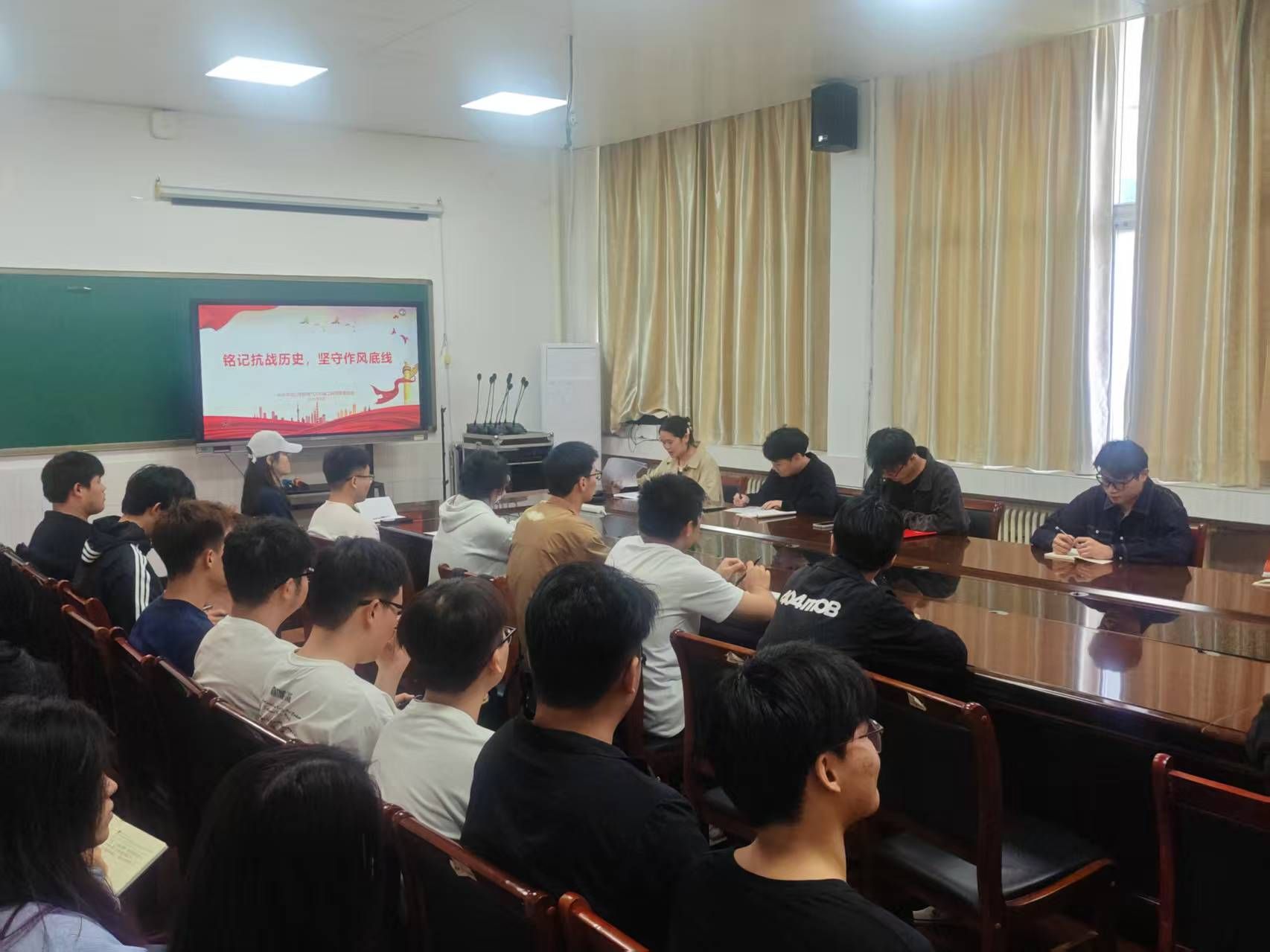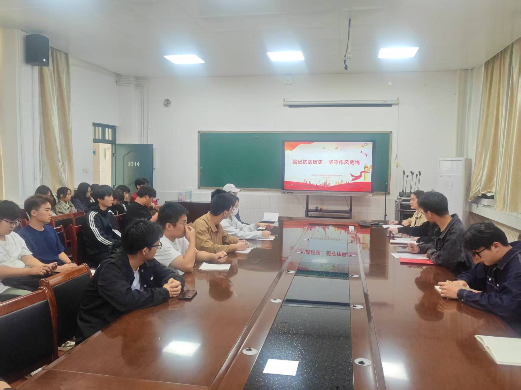 在纪念中国人民抗日战争暨世界反法西斯战争胜利80 周年的重要节点,为深入传承红色基因、切实强化学生党员纪律作风建设,2025 年 9 月 26 日 ,电气与机械工程学院学生第一、第二、第三党支部联合在 3314 会议室开展 “铭记抗战历史,坚守作风底线” 主题党日活动,全体学生党员参与此次活动。