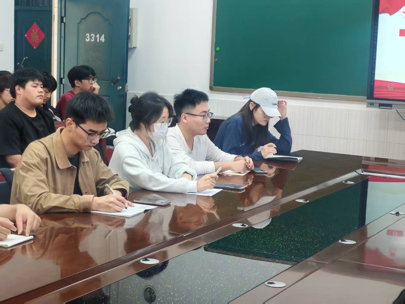 活动尾声,在学生党员宋旭枫的带领下,全体党员面向党旗庄严举起右拳,重温入党誓词。铿锵有力的誓言回荡在会议室,不仅是对入党初心的再次叩问,更是对坚守作风底线的郑重承诺。